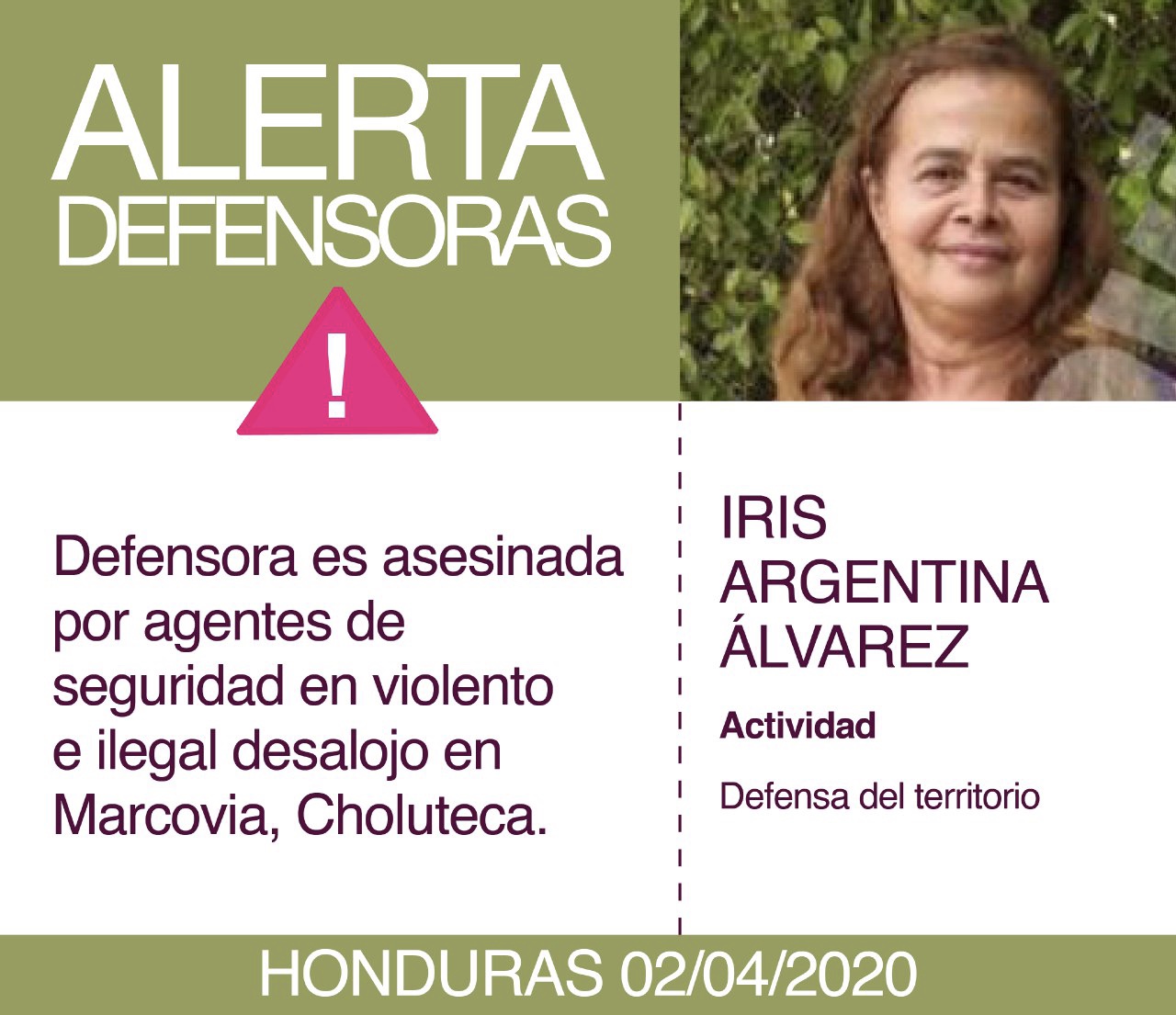 La Oficina del Alto Comisionado de las Naciones Unidas para los Derechos Humanos en Honduras (OACNUDH) condenó la muerte de la defensora Iris Argentina Álvarez Chávez, ocurrida ayer durante un desalojo violento en la comunidad de los Chachos, municipio de Marcovia, Choluteca.