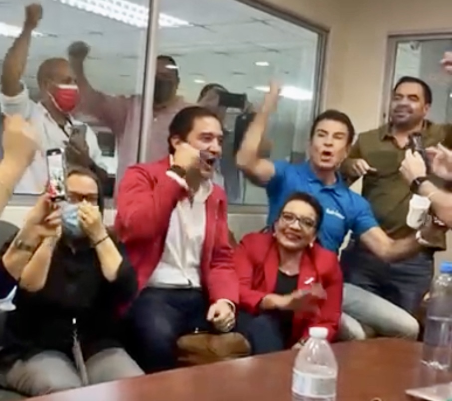 Según el último recuento a las 10:20 de la noche y con el 30% de los votos, la candidata de la coalicion opositora obtiene un 53.62 % contra un 33.93% de su principal contendiente, el oficialista Nasry Asfura.