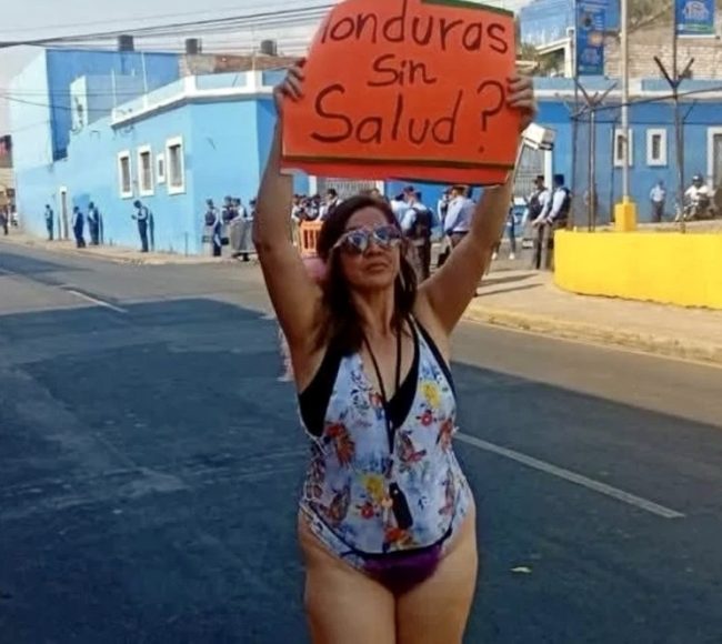 La doctora marcho por las calles de Tegucigalpa con un rótulo que se leía “Honduras sin salud”, lo que le provocó agresion verbal por parte de un activista del partido en el gobierno y empleado del Sistema de Emergencia 911, que la insultó e hizo señas obscenos con sus dedos.