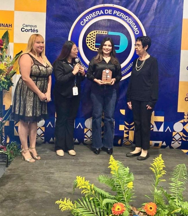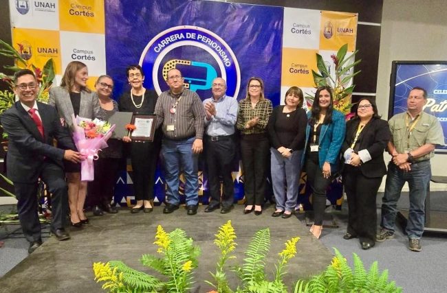 A los reconocimientos se sumaron la Asociación de Estudiantes de Periodismo de la UNAH-Cortés y la plana de catedráticos del campus encabezados por la jefa del departamento Ana Ruth Cuevas y el coordinador Oscar Romero.