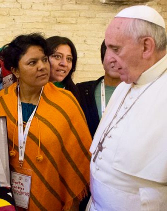 madre tierra" (San Francisco de Asis) y la reafirmación de los derechos de los pueblos originarios. Su testimonio pronunciado frente al santo padre Francisco nos conmovió profundamente", señala la misiva.