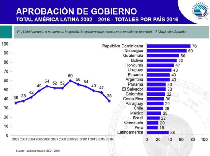El Gobierno del presidente Juan Orlando Hernández nuevamente ha salido reprobado, esta vez por el estudio de opinión pública Latinobarómetro.