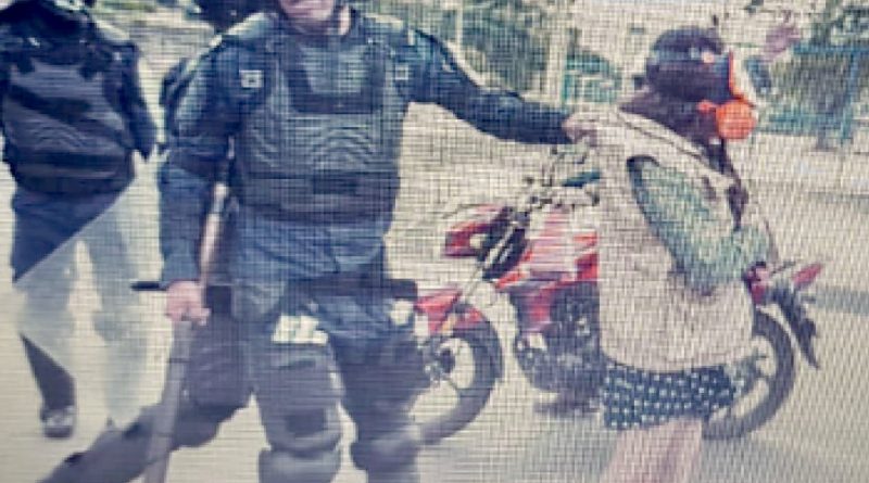 Zàmpenle gas; quítenle la máscara le ordenaba uno de los policías a sus compañeros, mientras la comunicadora hacía su trabajo.