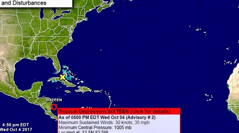 Leer másLa depresión tropical dieciséis se formó en el Caribe panameño y se dirige al norte, por lo que estará perjudicando
